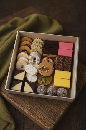 Zloženie: vajcia, cukor, olej, múka, maslo, kakao, mlieko, smotana, pomaranč, citróny, kokos, med, džem, um